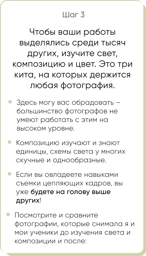 С 2018 года я успела пройти путь от любителя до профессионала, члена Союза фотохудожников России, многократного победителя фотоконкурсов и преподавателя для фотографов.