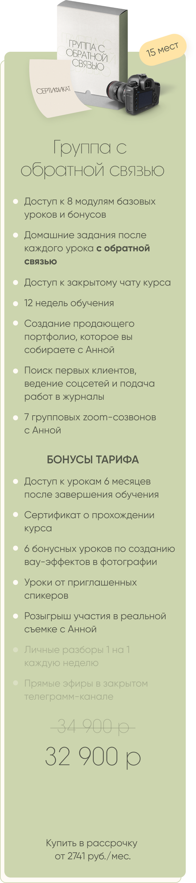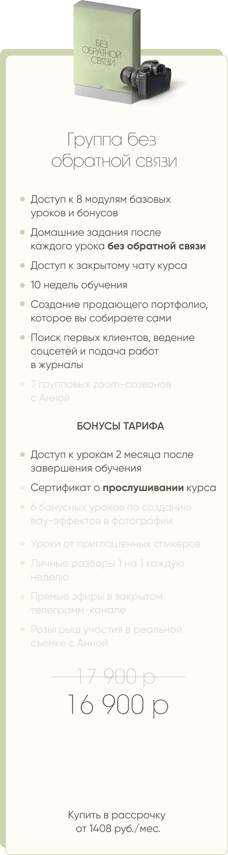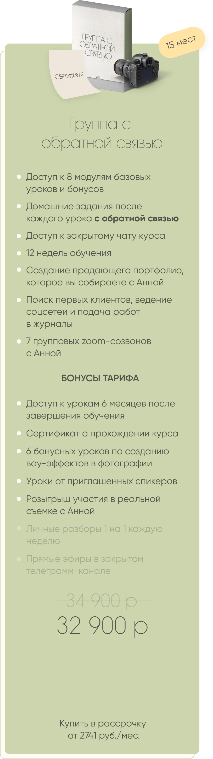 Я занималась на курсе по свету и композиции у Анны Захаровой. Учителя я выбирала осознанно, исходя из своих целей и интересов. Ситуация у меня была, наверное, как и у большинства — после покупки зеркалки я также пробовала снимать все подряд, как на мыльницу — пейзажи, птиц, цветы, друзей, но в какой-то момент вся эта бессистемность съёмки привела к потере интереса, фотоаппарат просто лежал на полке, это при том, что процесс съемки я люблю, как таковой. В какой-то момент я решила, что надо учиться, начала читать книги, пробовала смотреть марафоны от фотографов, так и познакомилась с Анной. Для меня ее работы выделялись на фоне остальных, поскольку я сначала увидела фотографии, подобные художественным картинам. А когда узнала о документальной серии о Карелии — это был полный восторг, и уверенность, что это тот фотограф, у которого я хотела бы учиться. Сомнения были по поводу моих собственных способностей, стиль Анны казался сложным. Я видела много коммерческих работ фотографов, но интуитивно хотелось познать и фотографию как вид искусства, со своими канонами и смыслом. И, конечно, я думаю, что, изучая второе, более сложное, создавать просто красивые кадры для соцсетей будет намного проще, чем наоборот. Анна открыла мир фотографии именно с интересующей меня стороны! Мы не просто изучали свет и композицию –собственно, это только средства для передачи идеи, а она должна быть. Разумеется, от меня зависит, буду ли я дальше применять полученные знания и как, но определенно благодаря обучению взгляд на создание фотографии изменился. Хочу обратиться к тем, кто еще думает и сомневается, как и я два месяца назад. Вообще, специалисту в своем деле виднее, как лучше и что лучше изучать. Поэтому программа Анны составлена с учетом на постепенное погружение в законы мира фотографии. При систематических занятиях информация отрабатывается и укладывается в голове на практике. Поэтому старайтесь выполнять все задания вовремя! Что касается времени — у меня тоже с ним совсем плохо, как у любого взрослого, занятого человека. Помогают только самодисциплина и желание. За 2 месяца занятий с Анной было все — и коронавирус с 39, и 2 проверки инспекций на работе, и защита диплома мужа и много чего еще. Но вечером я брала камеру и шла на улицу — таким образом, одновременно выполняла задание, и отдыхала. И была удивлена, когда Анна сказала, что у меня начинает получаться, т. к. мне кажется, что делала я очень мало. Во всяком случае, по сравнению с тем, сколько хотела бы делать. Что еще важно — Анна человек деликатный. Ошибки спокойно разбираются, с объяснением. Поскольку разборы недостатков очень важны для развития, важен и характер учителя. Например, я люблю фотографировать и так увлекаюсь, что иногда снимаю все подряд. Поэтому потом разобрать, какой кадр просто красив, какой на самом деле может быть интересен — для начала вообще сложно. Анна сделала идеальную установку на основе моих работ, чтобы я знала, на что обратить внимание при съемке, и как потом отбирать фотографии. Кстати, именно Анна обратила внимание, что один сюжет на моих фотографиях повторяется, и посоветовала сделать проект, над чем я и сейчас продолжаю работать.